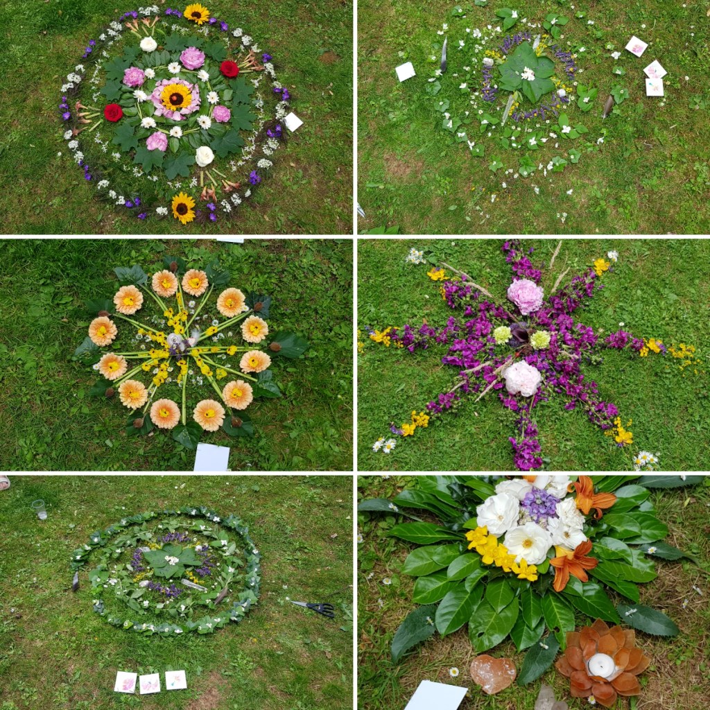 Op 21 juni mochten we in de namiddag en op initiatief van Myriam Oorts (Pur-Esse) Happy Circles creëren in het minuscuul klein parkje Lindenberg achter de bibliotheek en in Wommelgem. Van elke cirkel volgde een bloemlezing. Zoals gewoonlijk hadden de deelnemer hun eigen bloemen bij en vond dit plaats aan vrijwillige bijdrage.